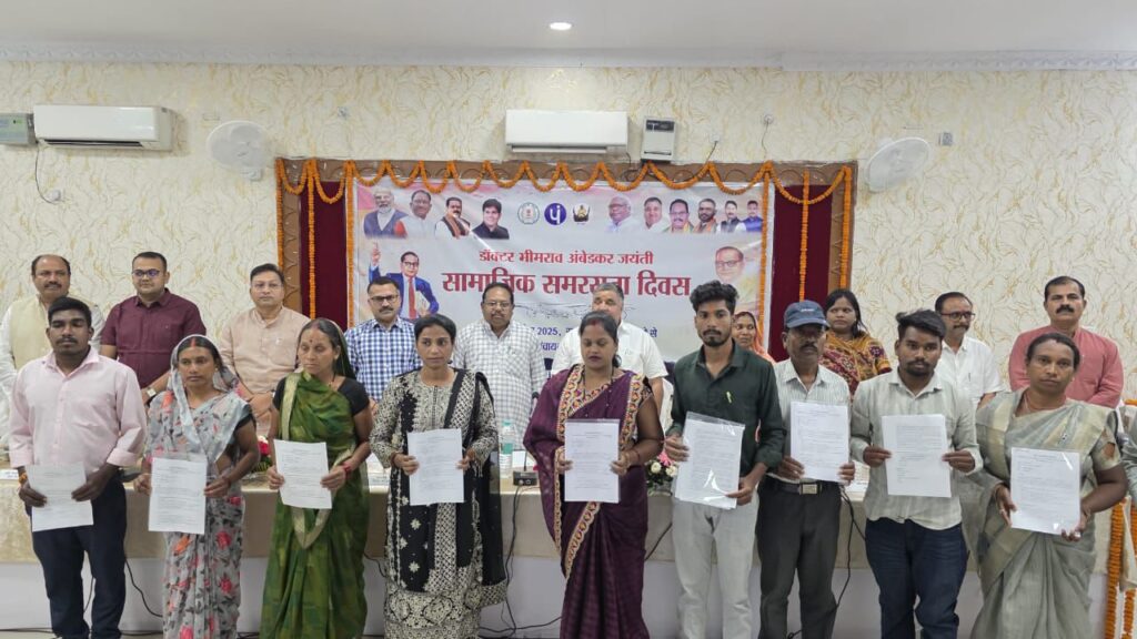 मुख्यमंत्री श्री विष्णु देव साय ने वीडियो कॉन्फ्रेंसिंग के माध्यम से डॉ. भीमराव अंबेडकर जयंती और सामाजिक समरसता दिवस की शुभकामनाएं देते हुए कहा कि हमारी सरकार समाज के हर वर्ग के उत्थान के लिए लगातार काम कर रही है, ताकि कोई भी व्यक्ति विकास की धारा से वंचित न रहे। प्रधानमंत्री आवास योजना के तहत किए जा रहे सर्वे से पात्र लोगों का पक्का मकान बनाने का सपना साकार होगा। उन्होंने कहा कि अटल पंचायत डिजिटल सुविधा केंद्र से ग्रामीणों को विभिन्न शासकीय योजनाओं, प्रमाण पत्र, पेंशन, बैंकिंग सेवाएं जैसे अन्य आवश्यक डिजिटल सेवाओं का लाभ मिलेगा।